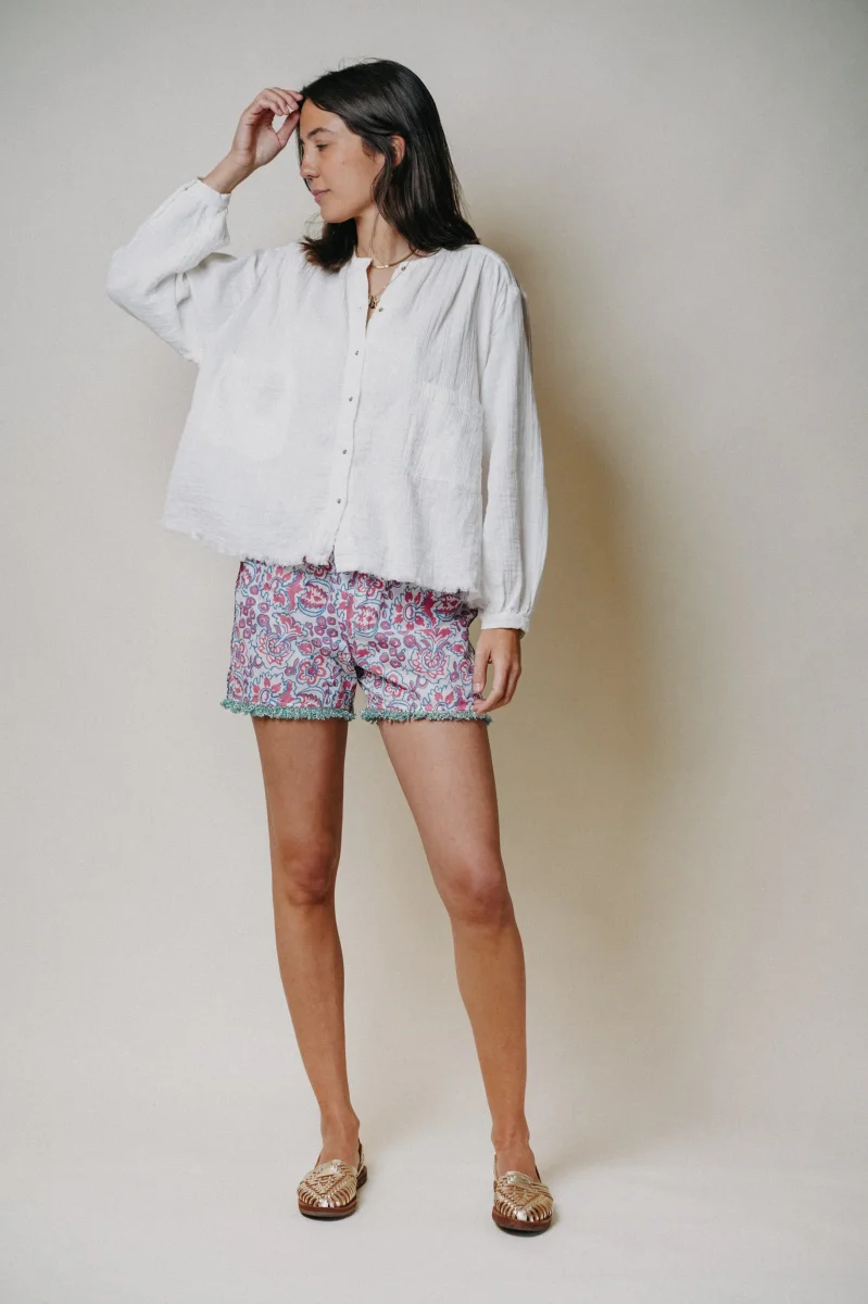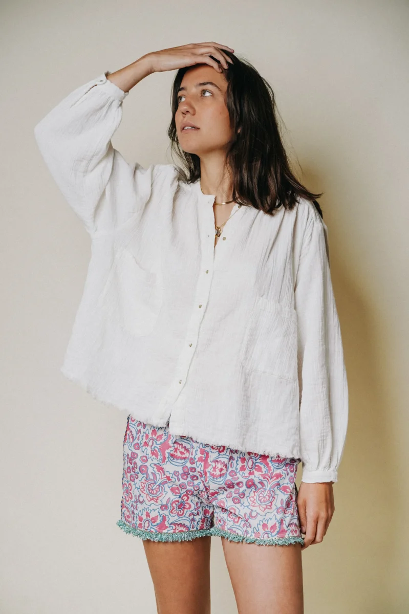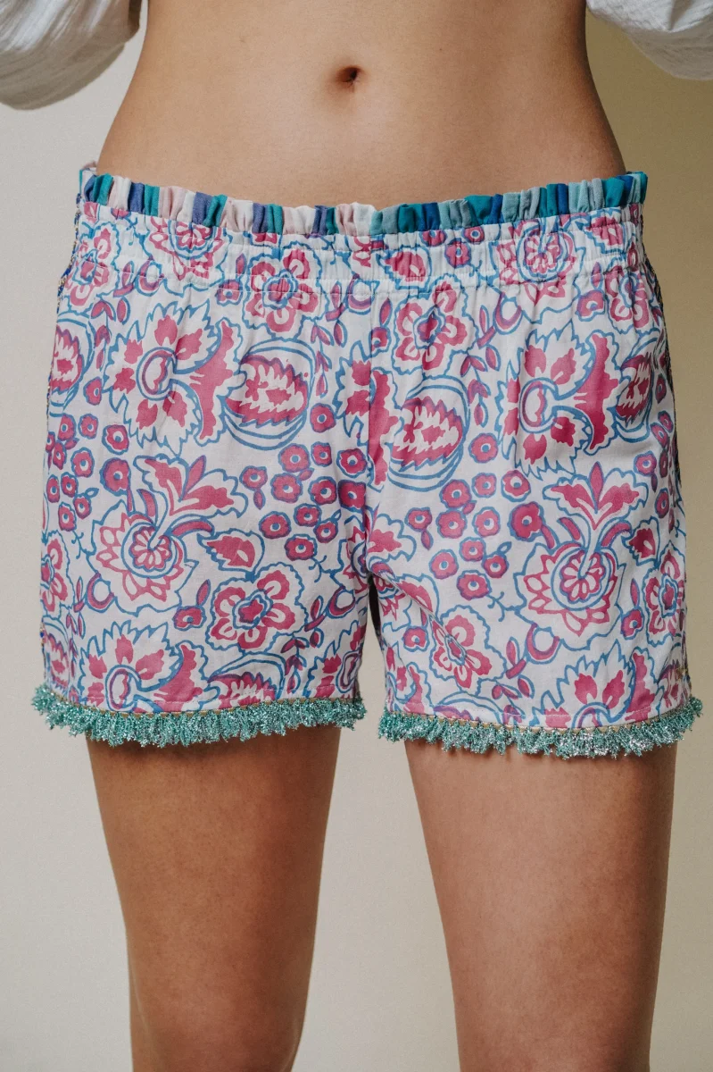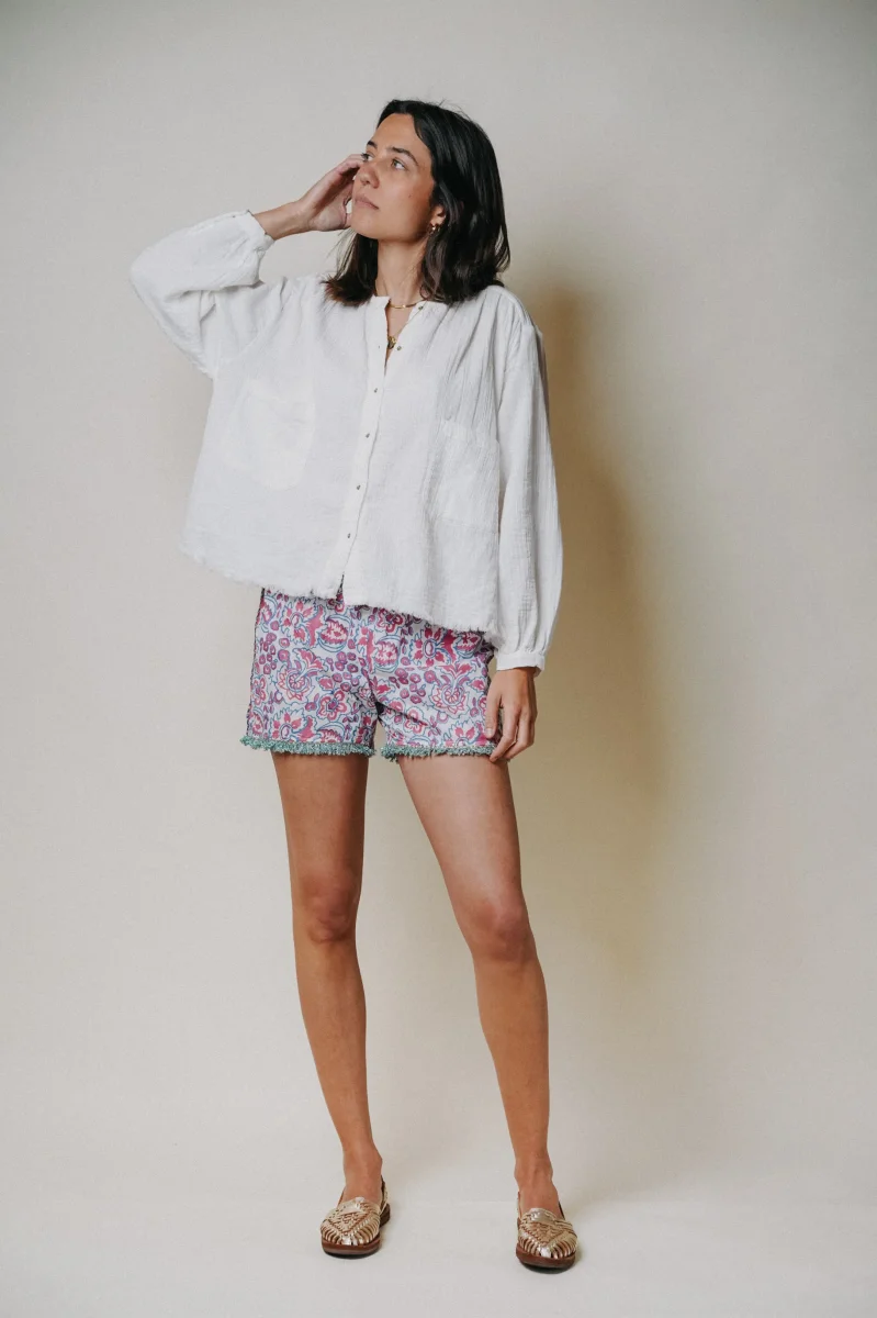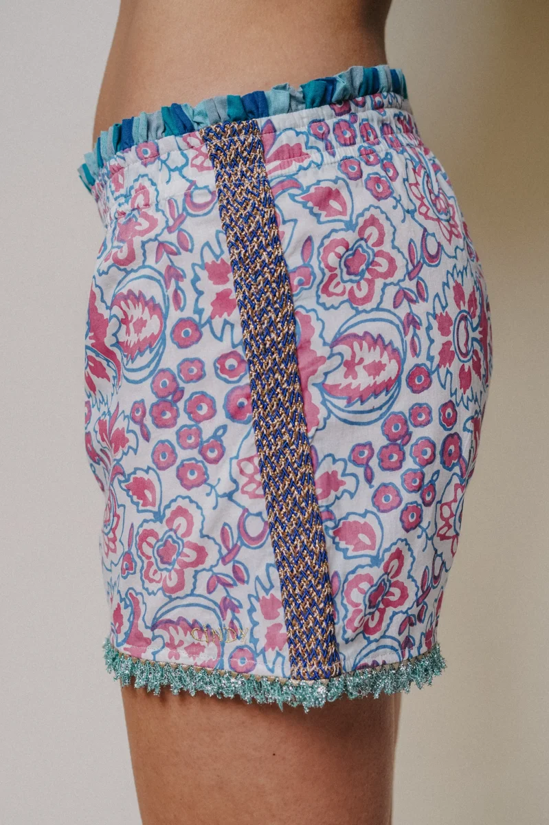 Ici, le short boubou Cindy est confectionné dans le tissu du boubou Divya.