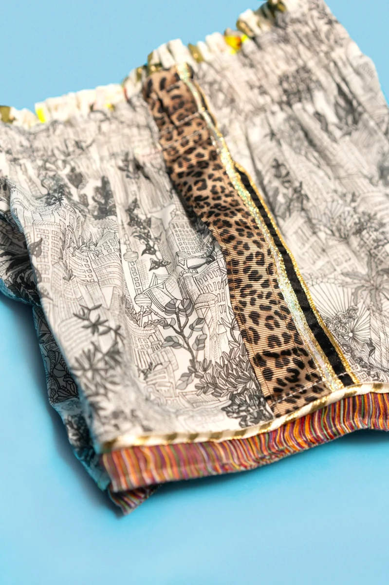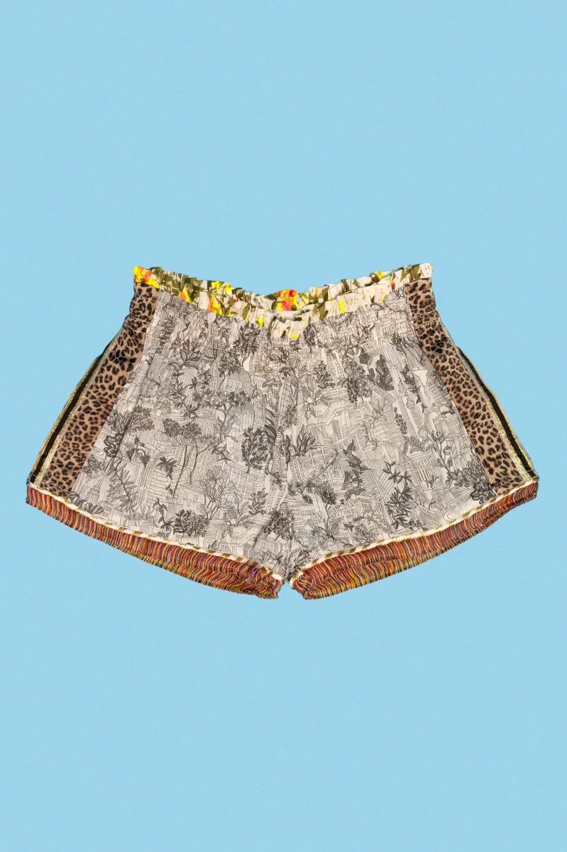Craquez pour nos adorables shorts boubou. Ici, le short Victorette est la version pour petite fille du modèle Malou. Sur les côtés, deux bandes léopard. Des franges multicolores viennent finir la jambe. Une ceinture élastique permet à votre enfant d’enfiler son short facilement. La ceinture ne sert pas le ventre.