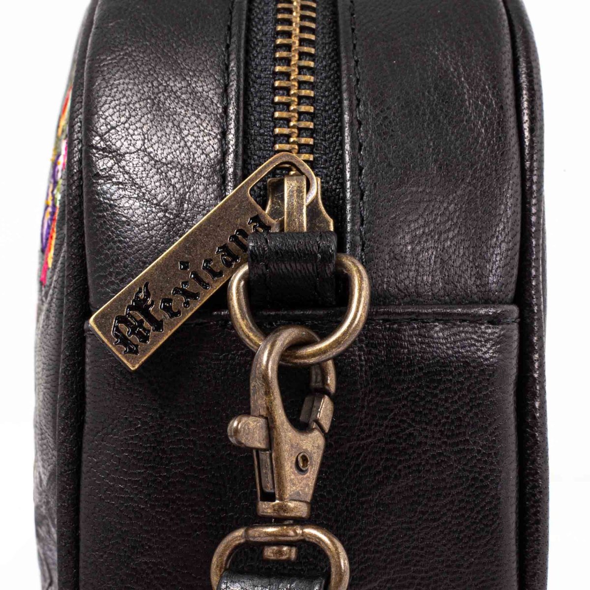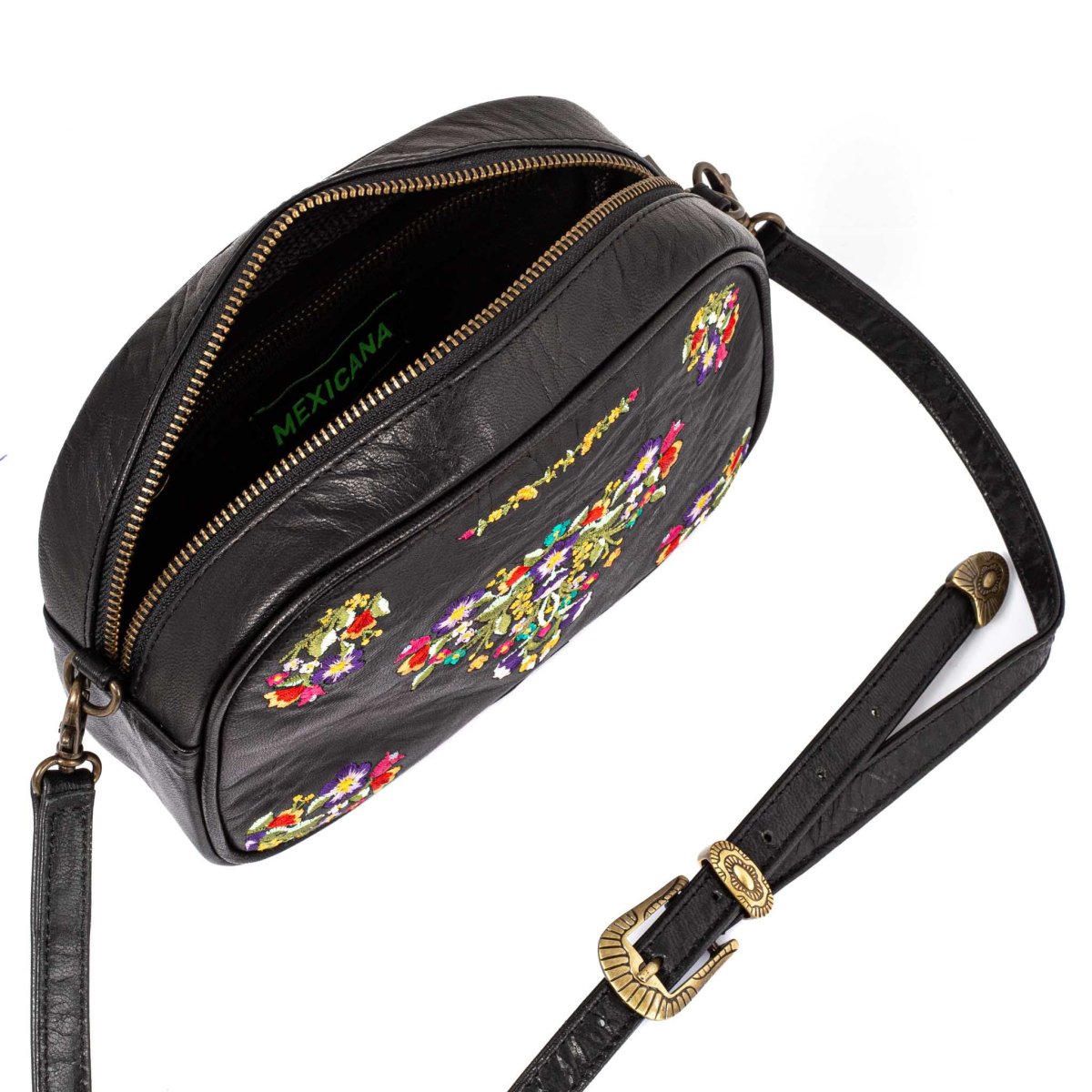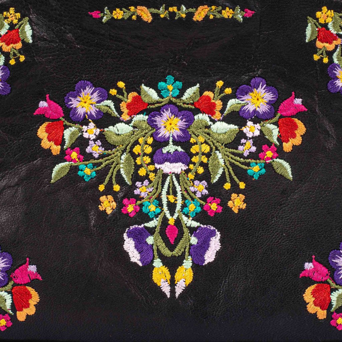 MINI SAC EN CUIR AVEC BRODERIE FLORALE Couleur noir Cuir de vachette Doublure coton Dimension 22 x 15 x 7 cm