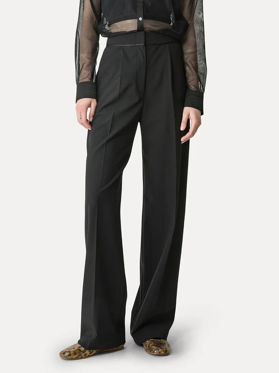 Pantalon Zaoua signé Françoise confectionné en en crêpe de soie caramel imprimée de pois marron. Une pièce réalisée avec des tissus non utilisés issus des grandes maison de mode.