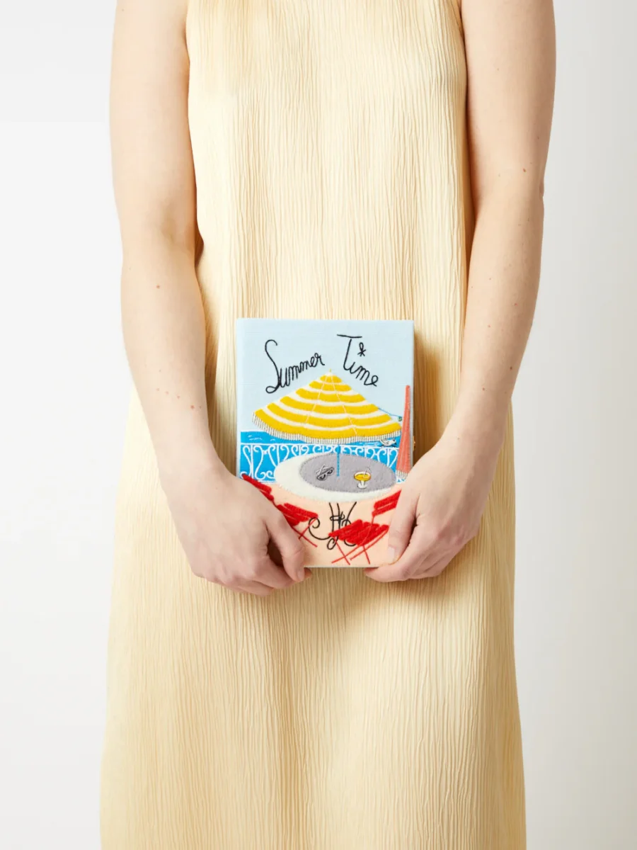 Cette pochette-livre Summer Time Olympia Le Tan est l’association parfaite de l’art et de l’accessoire. Elle est réalisée en coton brodé entièrement de soie colorée.