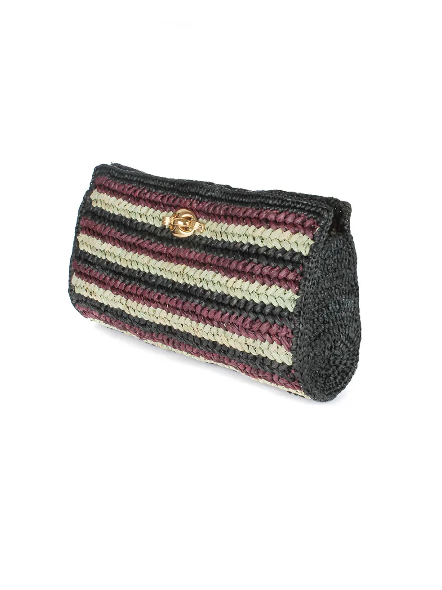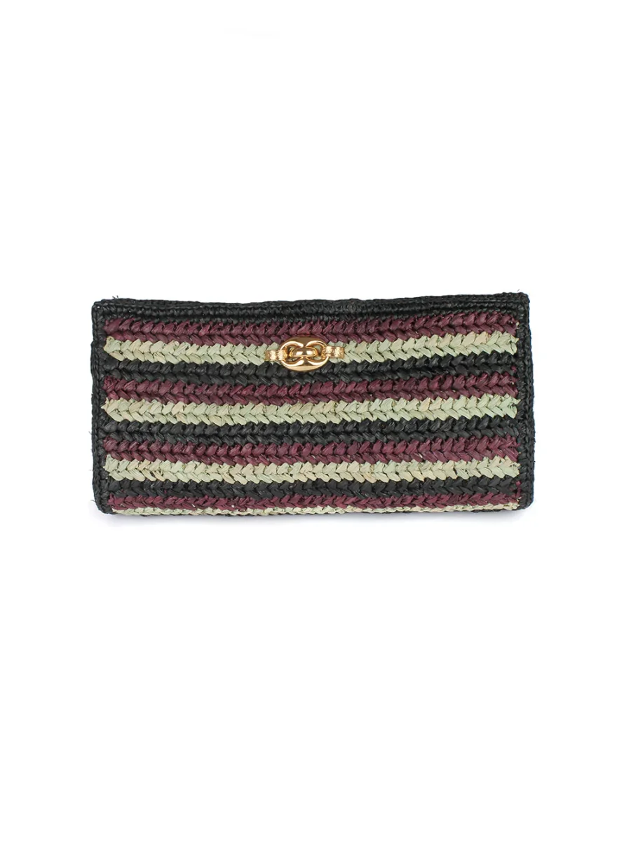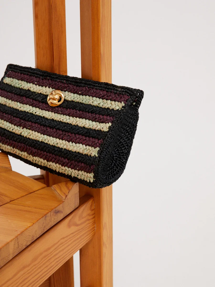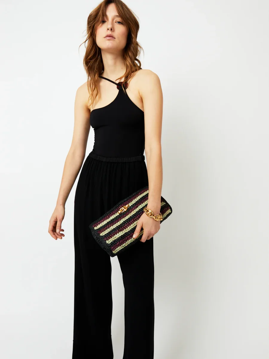 La pochette Uptown en raphia de confection artisanale, s’associe à la collection emblématique Cophéa de Gas Bijoux, avec son maillon bombé doré à l’or fin.