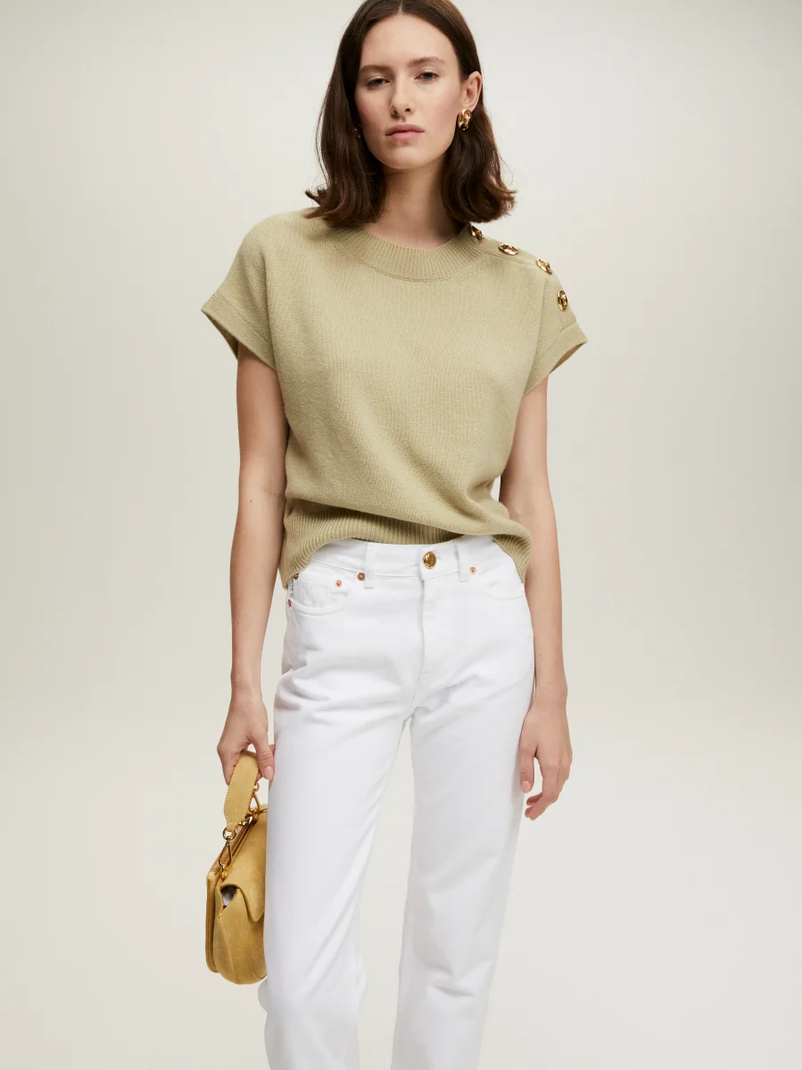 – Manches courtes tombantes dont l’une est décorée de boutons dorés Cophéa