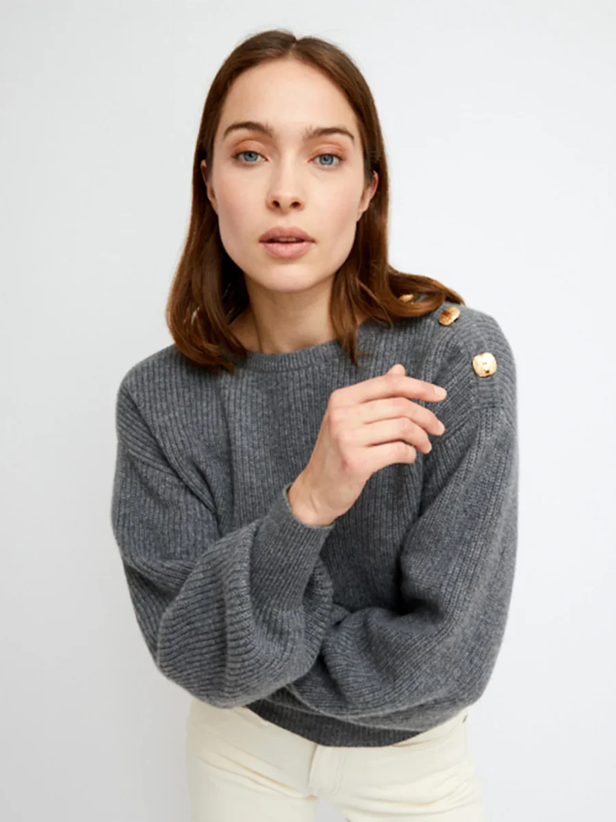 Pull Niki Thunder Grey signé By Marie Collection confectionné dans une maille anglaise en cachemire de couleur gris. Les cachemires BY MARIE sont réalisés en série limitée à la main et à l’aide d’une machine à tricot ancienne dans une organisation au Népal qui existe depuis 20 ans. Cette entreprise est composée essentiellement de femmes et comme nous, a à coeur la transmission d’un savoir faire de qualité.