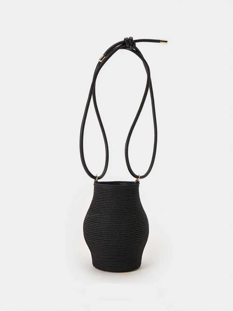 Sac Amphora signé Amphora Collection confectionné en paille noire. Une pièce issue de la collection « Sculptures » dont le design s’inspire des amphores grecques.