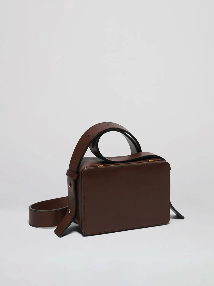 Le sac Maya couleur Chocolate Cooper est réalisé en cuir de veau grainé par Lutz Morris. Confectionné à la main en Allemagne, ce sac est doté de la structure caractéristique de la marque, comporte sept fentes pour cartes, une fermeture à double loquet et une poche extérieure au dos.