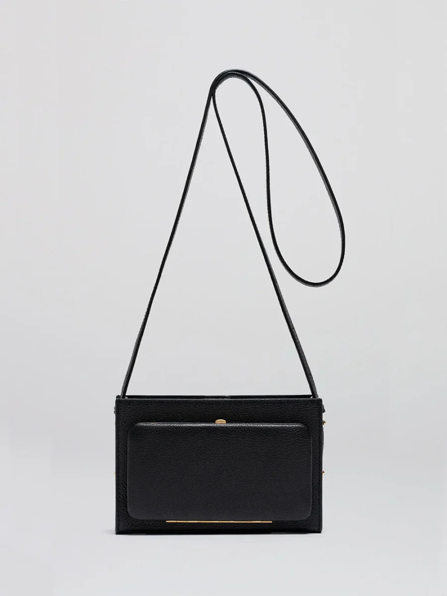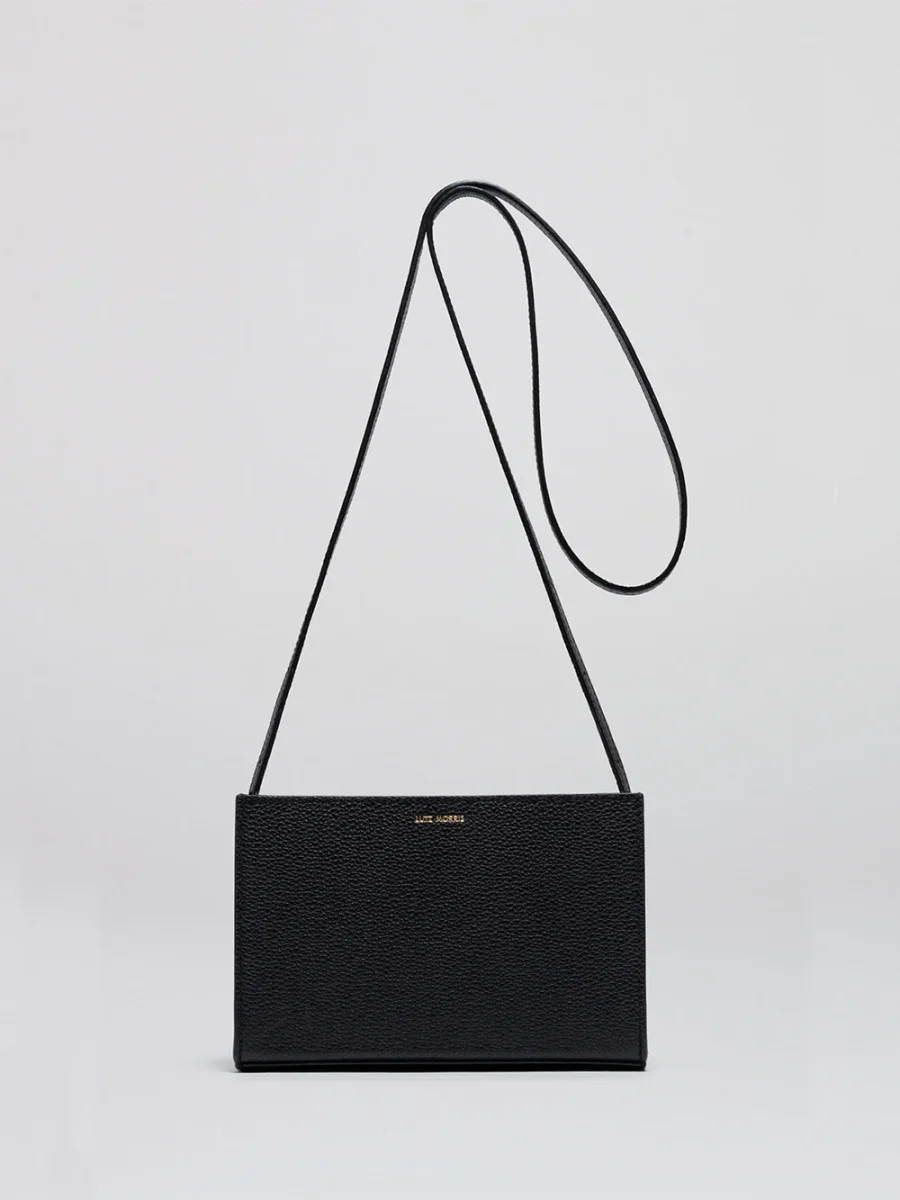 Sac Parker Horizon de la marque Lutz Morris de coloris Black Brandon, il peut être porté en bandoulière ou à l’épaule, la anse est réglable. Il comporte une poche extérieure construite avec le cadre signature Lutz Morris en acier inoxydable plaqué or 24 carats ainsi qu’une fermeture à loquet unique avec quatre emplacements en cuir pour ranger vos cartes.