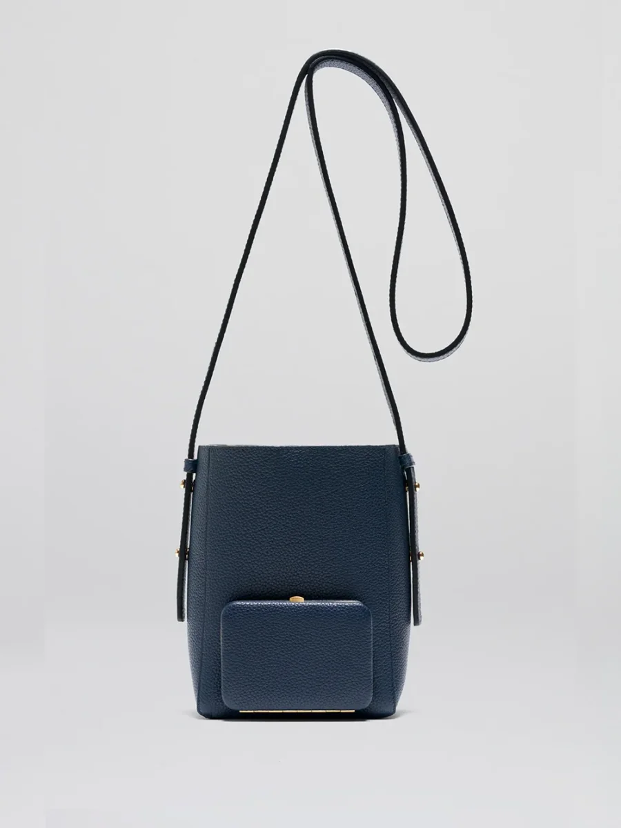 Le sac Parker taille S couleur navy est réalisé par Lutz Morris. Confectionné en Allemagne avec un cuir de veau, il possède une poche extérieure avec la structure signature de Lutz Morris.