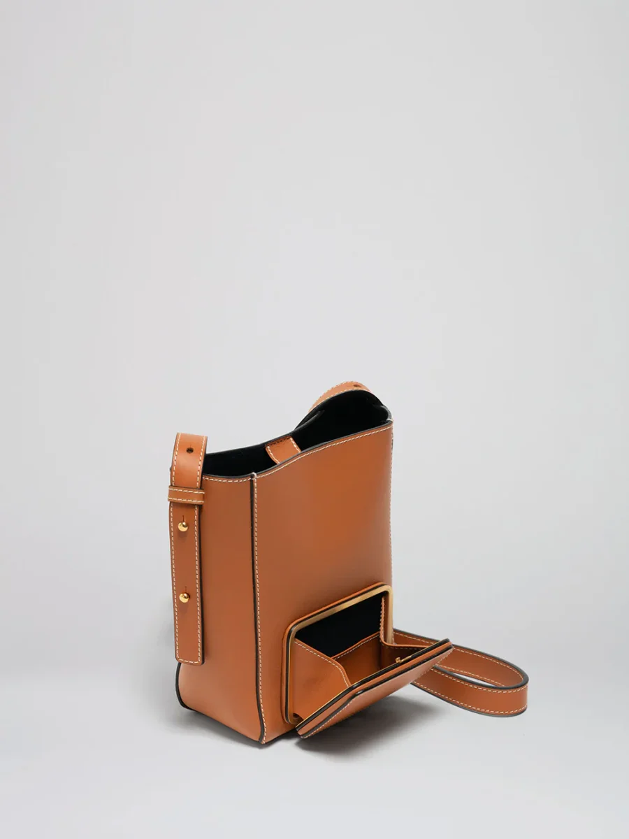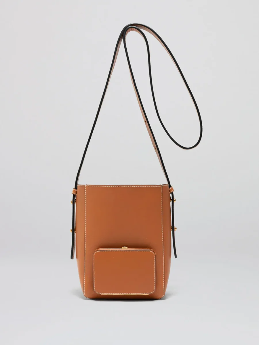 Le sac Parker taille S couleur Soft Tan Monty est réalisé par Lutz Morris. Confectionné en Allemagne avec un cuir de veau, il possède une poche extérieure avec la structure signature de Lutz Morris.