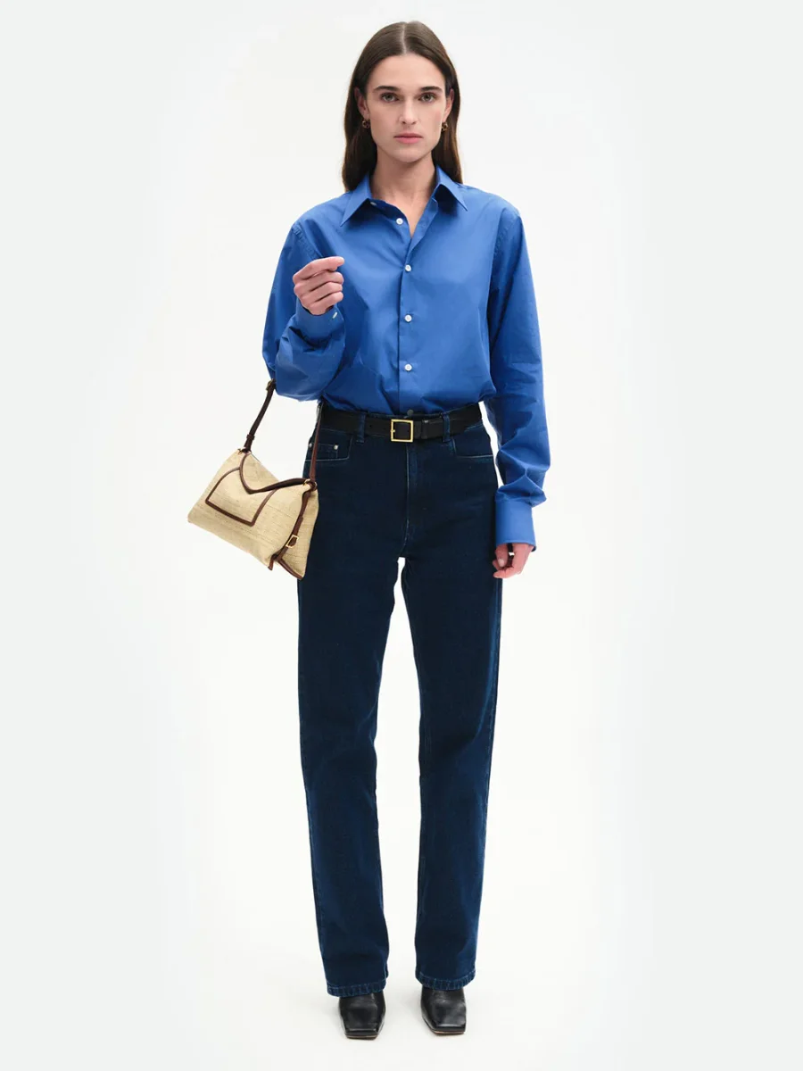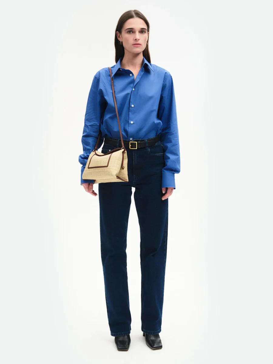 Sac Penelope Slouch signé Wandler confectionné en raphia naturel et aux bordures en cuir marron. Un sac pouvant se porter en bandoulière, à l’épaule ou à la main grâce à une sangle ajustable. – Fermeture éclair sur le dessus avec rabas en cuir magnétique – Doublure en cuir suédé beige – Dimension : 26 x […]