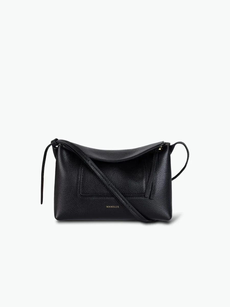 Sac Penelope Slouch Mini signé Wandler confectionné dans un cuir de veau grainé de couleur noire. Un sac pouvant se porter en bandoulière, à l’épaule ou à la main grâce à une sangle ajustable.