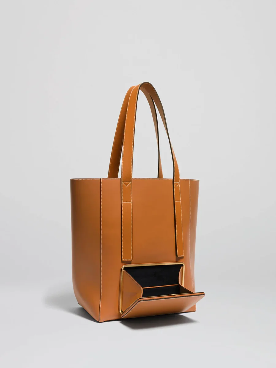 Sac Seveny signé Lutz Morris confectionné en Allemagne en cuir de veau, il possède une poche extérieure avec la structure signature de Lutz Morris.