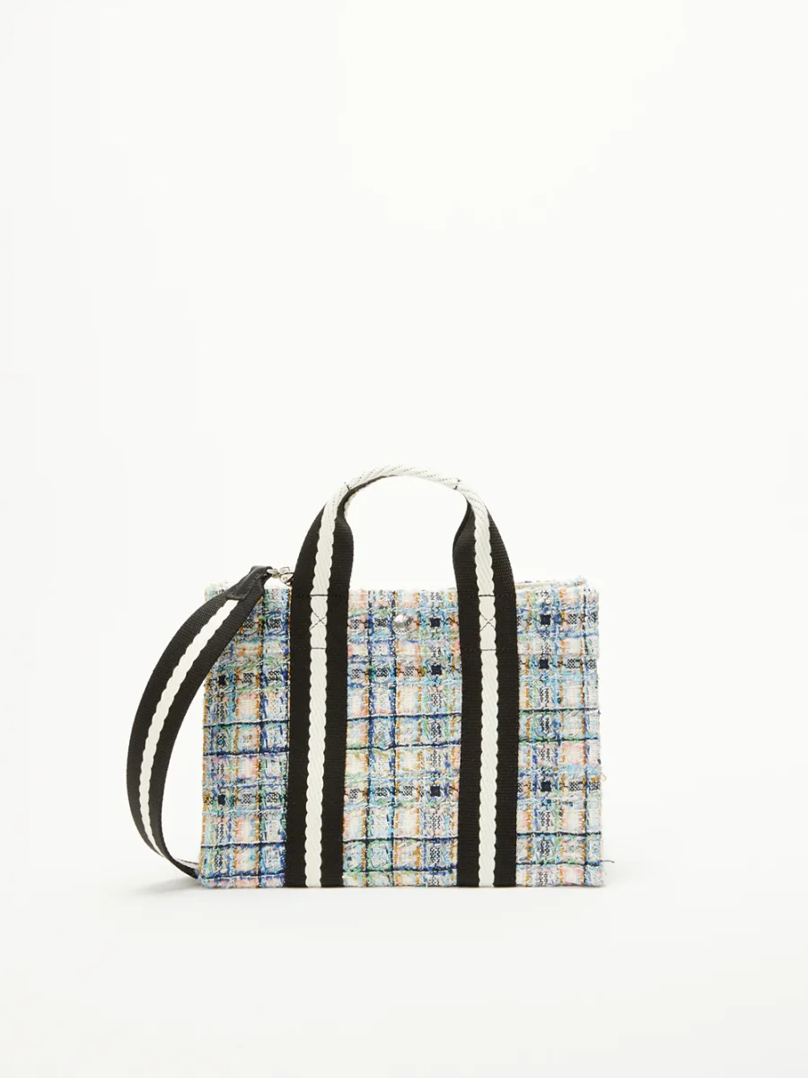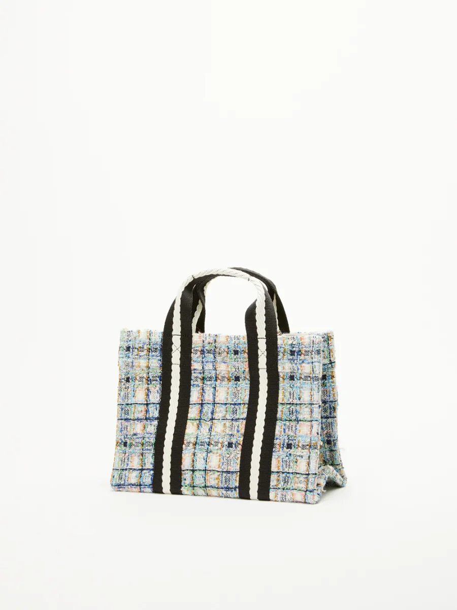 Le sac Tote Tweed Light Blue en taille S réalisé par Rue de Verneuil est un sac cabas en tweed dans les tons bleu ciel avec des anses rayées noires et écrues. Il se porte aussi bien à la main par ses deux petites anses qu’à l’épaule avec sa bandoulière détachable. Le sac se ferme […]