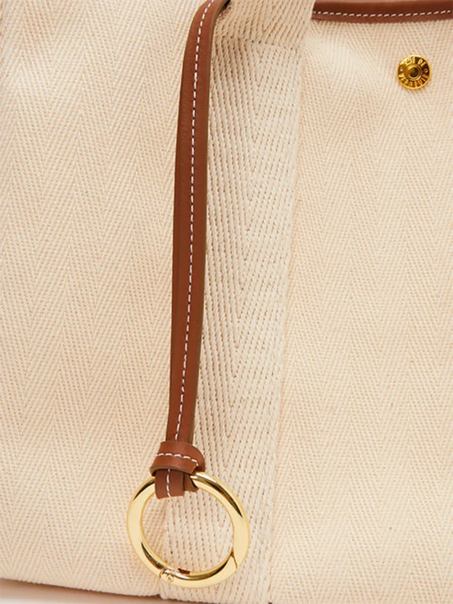 Sac Traversée S signé Rue De Verneuil en canva « Verneuil » beige naturel. Un sac confectionné en coton beige chevronné et aux bordures en cuir marron clair. – Forme ajustable grâce à deux boutons pressions sur les côtés – Finition métalliques en laiton dorée – Porte-clé assorti accroché – Bandoulière amovible assortie de 93cm – Dimensions […]