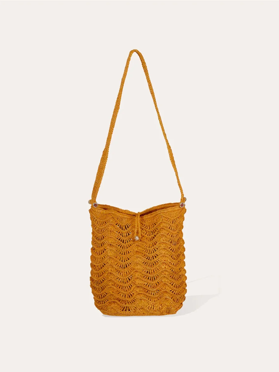 Sac Seau Les Palmiers signé Gas Bijoux confectionné en raphia de couleur jaune safran. Un sac seau confectionné de manière artisanale dans notre atelier à Madagascar. – Point vague réalisé en raphia naturel de Madagascar– Anse ornées de barrettes serties de cabochons en verre– Non doublé– Porté à l’épaule– Fermeture à boucle– Dimension : 30 […]