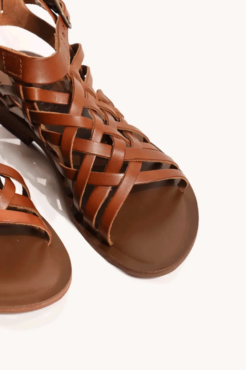 Un design sophistiqué et intemporel pour cette sandale style « spartiate ». Entièrement tressée à la main, elle assure un maintien optimal et un confort idéal pour toute la journée.