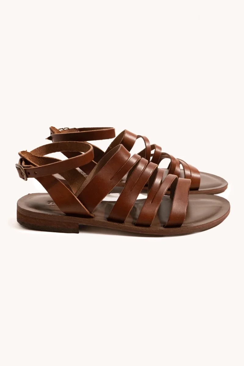 THERAS – SANDALES EN CUIR DE VACHETTE COGNAC