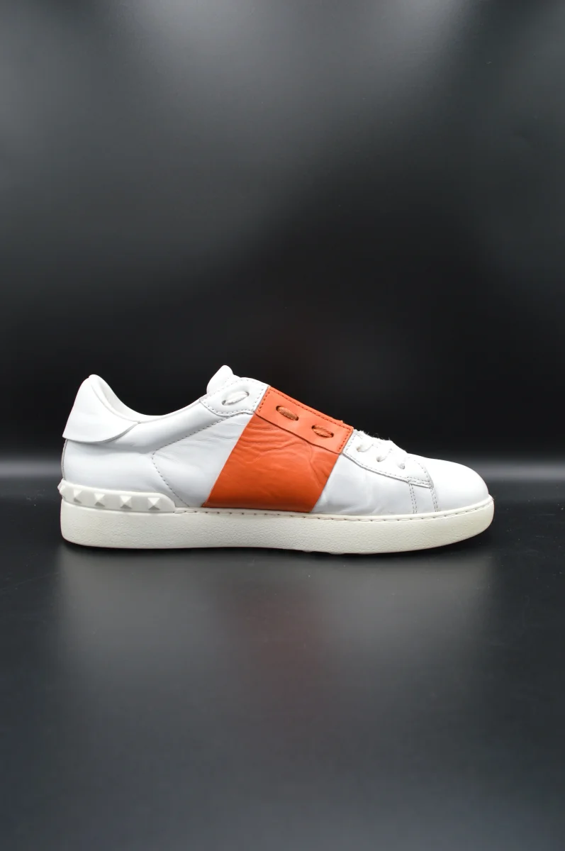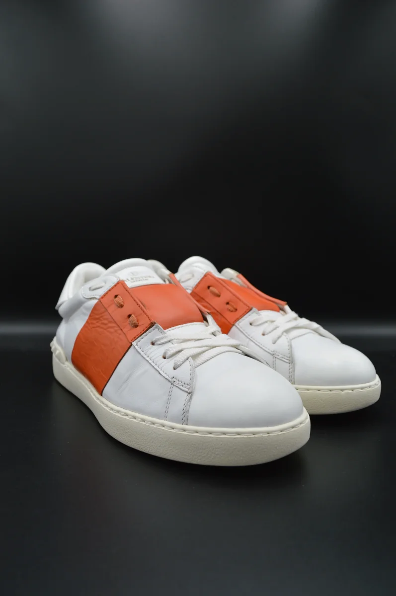 Détails de l’article : Marque : Valentino Garavani Modèle : open Pointure : 40 Etat : très bon état Couleur : blanc / orange Matière : cuir Accessoires inclus : dustbag