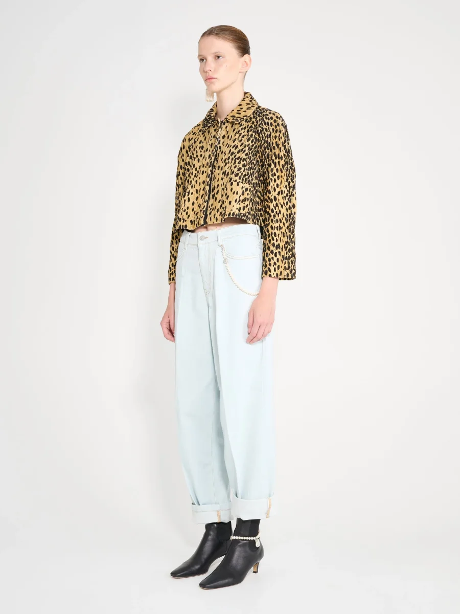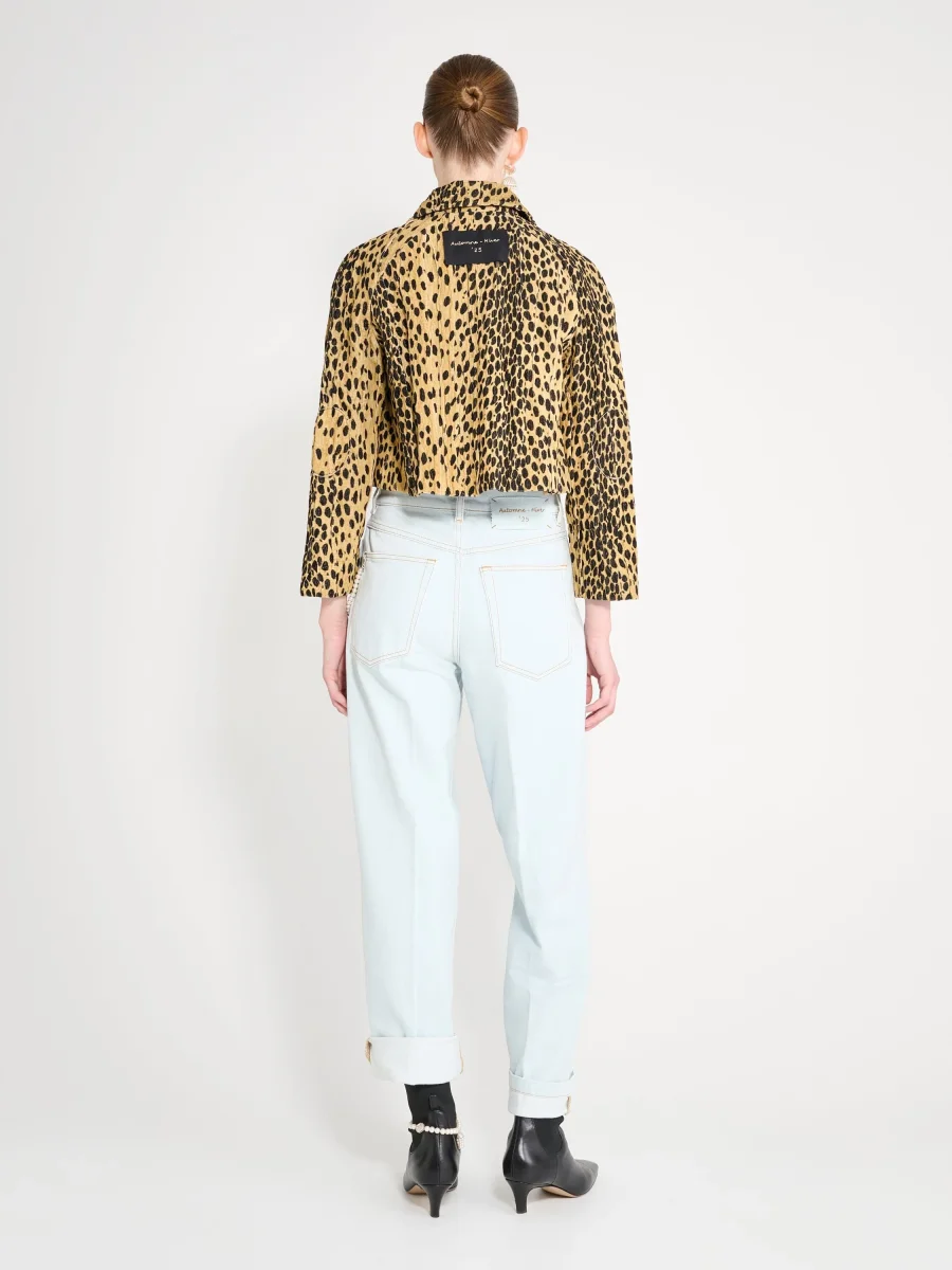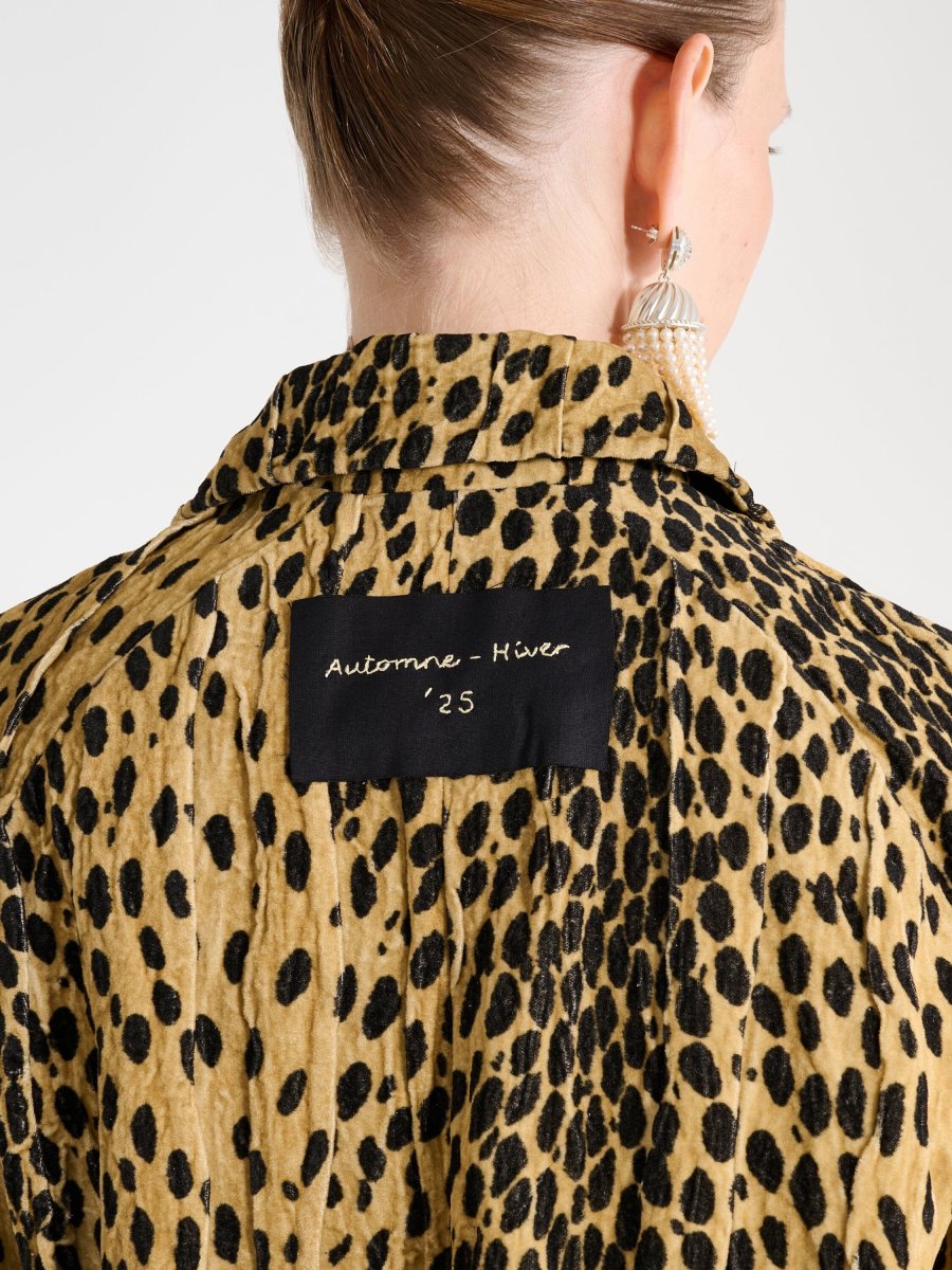Veste Pixie Léopard signée Nackiyé confectionnée dans un tissu velours à l’imprimé léopard. Une veste courte et à la coupe évasée.