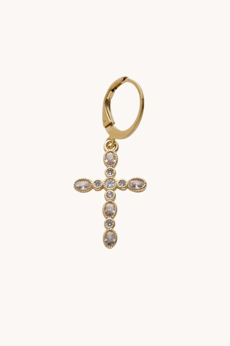 Boucle d’oreille croix dorée avec zircons