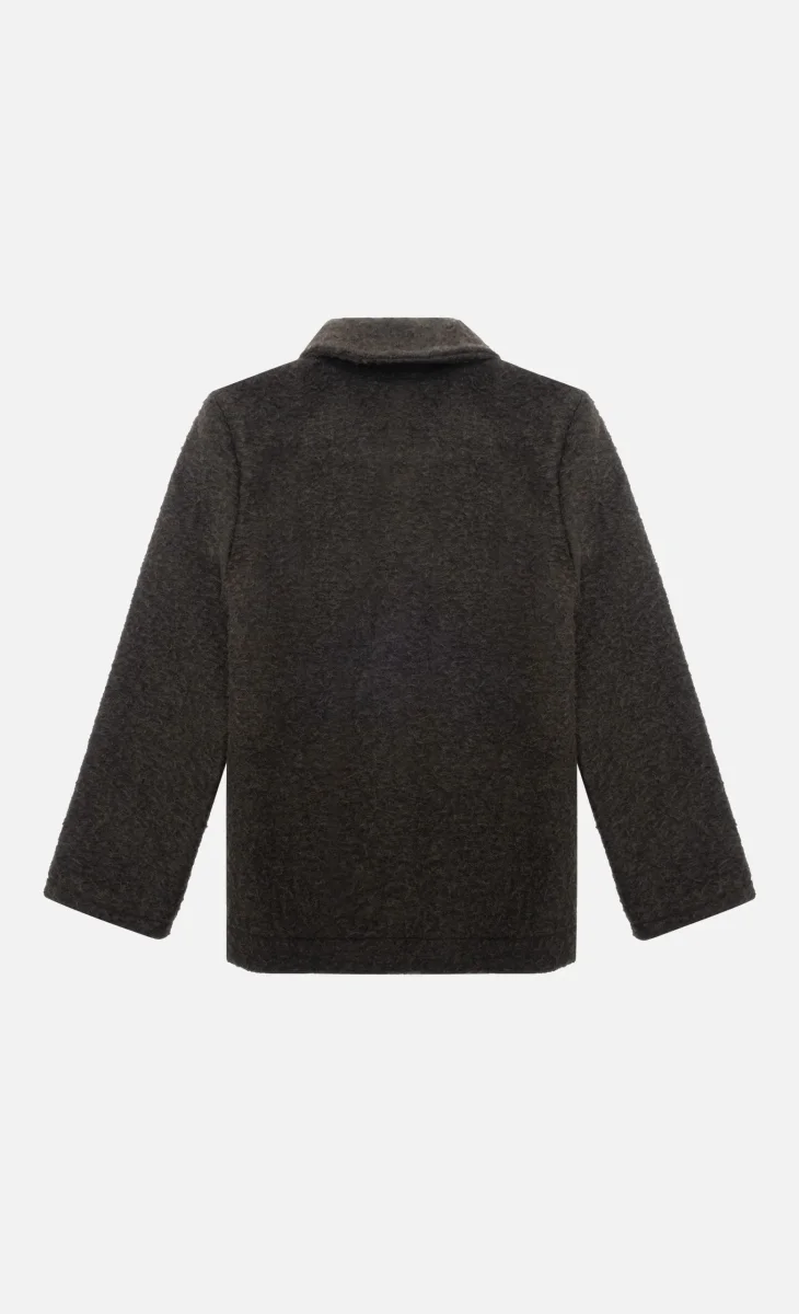 Veste courte coupe classique en mélange de laine de couleur verte. Col à revers et manches longues. Poches plaquées. Fermeture boutonnée sur le devant. Wooden a été fondée dans le but de donner aux gens la possibilité d’exprimer leur identité en créant parmi différents produits toujours nouveaux et jamais répétitifs. Les produits sont tous fabriqués […]