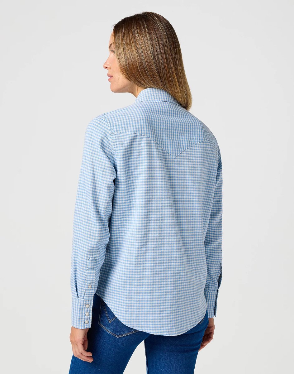 Confectionnée dans un coton léger et respirant avec une coupe slim épousant la silhouette tout en la sublimant, notre chemise Western pour femme présente deux poches poitrine, des boutons-pression aux poignets et une fermeture avant pressionnée sur toute la longueur.