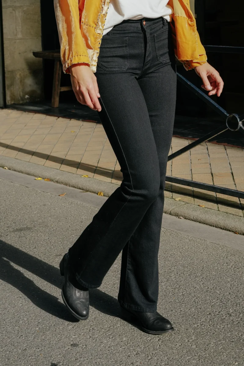 Ajoutez une touche rétro à votre garde-robe cette saison avec notre emblématique jean Flare. Fabriqué dans un denim à élasticité moyenne ultra-confortable, en noir usé pour un look intemporel sans effort.